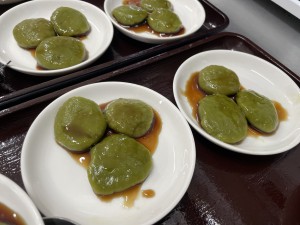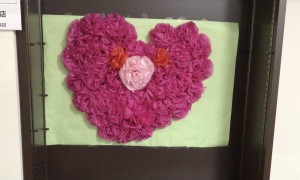 小さなマルを紙でたくさん作り、それを貼っていき、立体的な作品となりました。