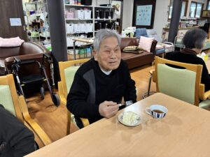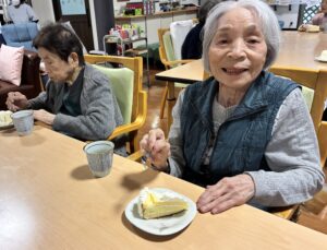 ホーム > デイサービス > Christmas cake 🎄 公開日:2025/12/25 今年も先生からクリスマスケーキをいただきました! どれも美味しそうです! ホワイトチョコがトッピングされていた様で、甘くて美味しいと好評いただきました! 職員もサンタさんになって仕事しました。 プレゼントはありませんが雰囲気を出してみました🎅 デイサービス 日々の日記